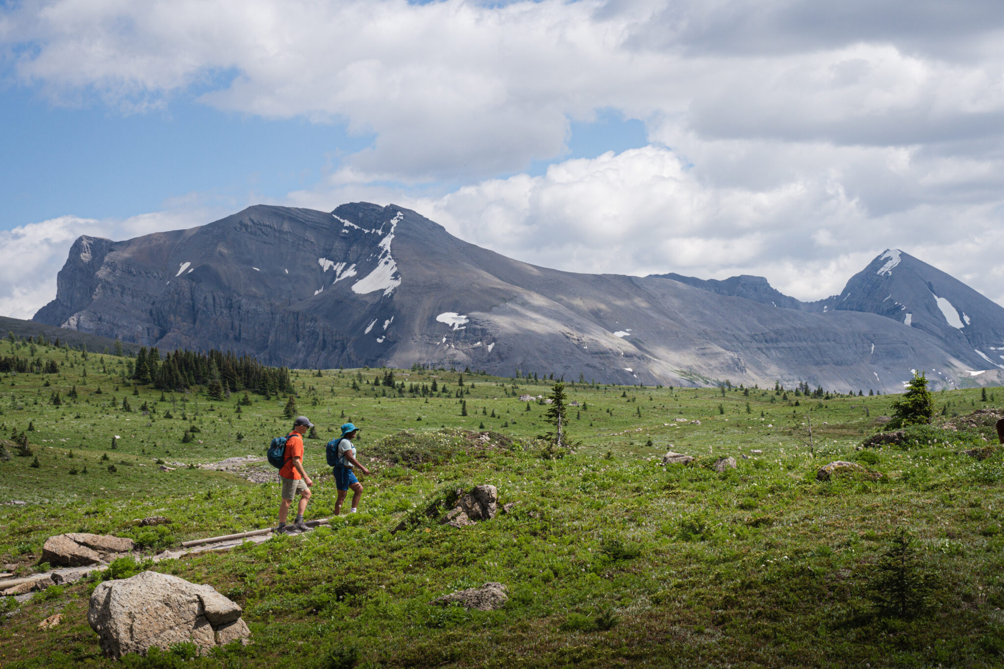 Soon, the dramatic silhouette of Castle Mountain rises before you, its fortress-like walls glowing amber in the shifting light. From here, pause at sweeping viewpoints where the horizon seems endless and the Rockies feel close enough to touch, their snow-dusted crowns shimmering in the alpine sun.