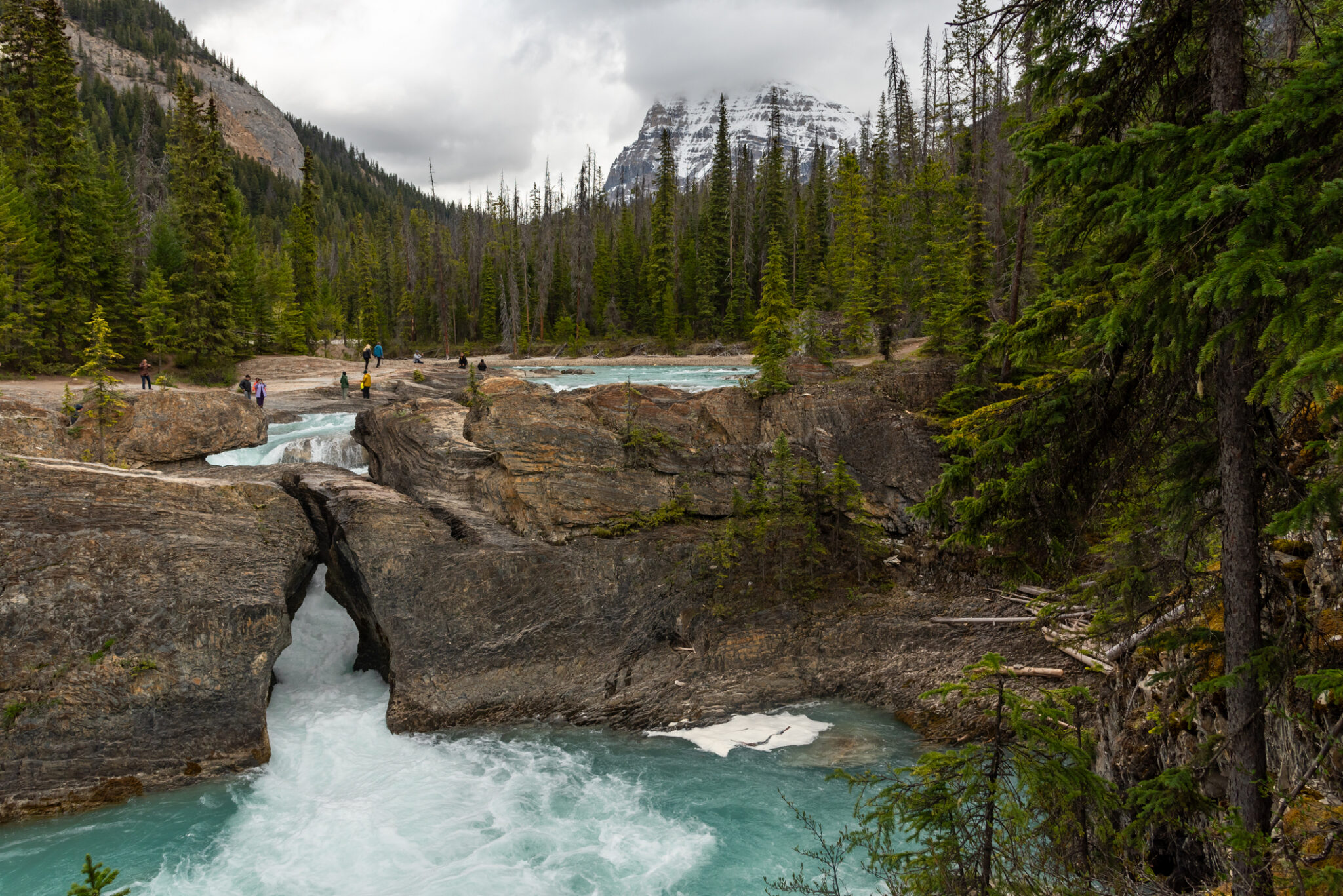Crossing into Yoho National Park, the adventure continues. Wander the shores of Emerald Lake, its waters a striking shade of green, framed by dense pine forests and soaring ridgelines. At the Natural Bridge, witness the power of time and water as centuries of rushing currents have carved solid stone into a sculptural arch. It’s nature’s artistry on full display, timeless and humbling.