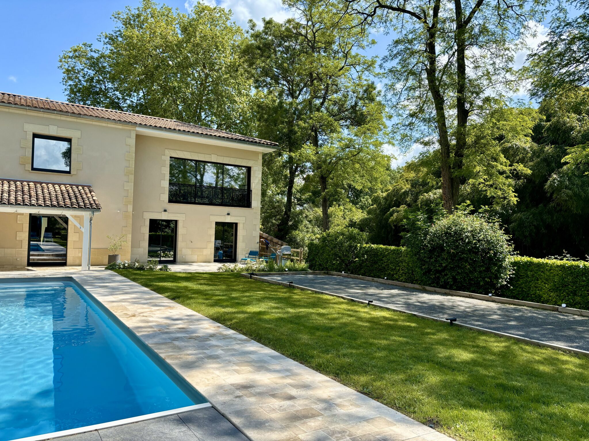 Nestled on a working wine estate just 40 minutes from Bordeaux, your five-bedroom villa blends rustic charm with refined comfort. Stone walls, exposed beams, and wide windows frame sweeping vineyard views that shift with the light — from misty mornings to sunsets awash in gold. Enjoy breakfast on the terrace, relax by the pool as cicadas sing, and share stories under a canopy of stars. With spacious living areas, private en-suite bedrooms, and a serene countryside setting, this villa invites you to live like a local – slowly, beautifully, and completely at ease. Final cleaning and utilities included.