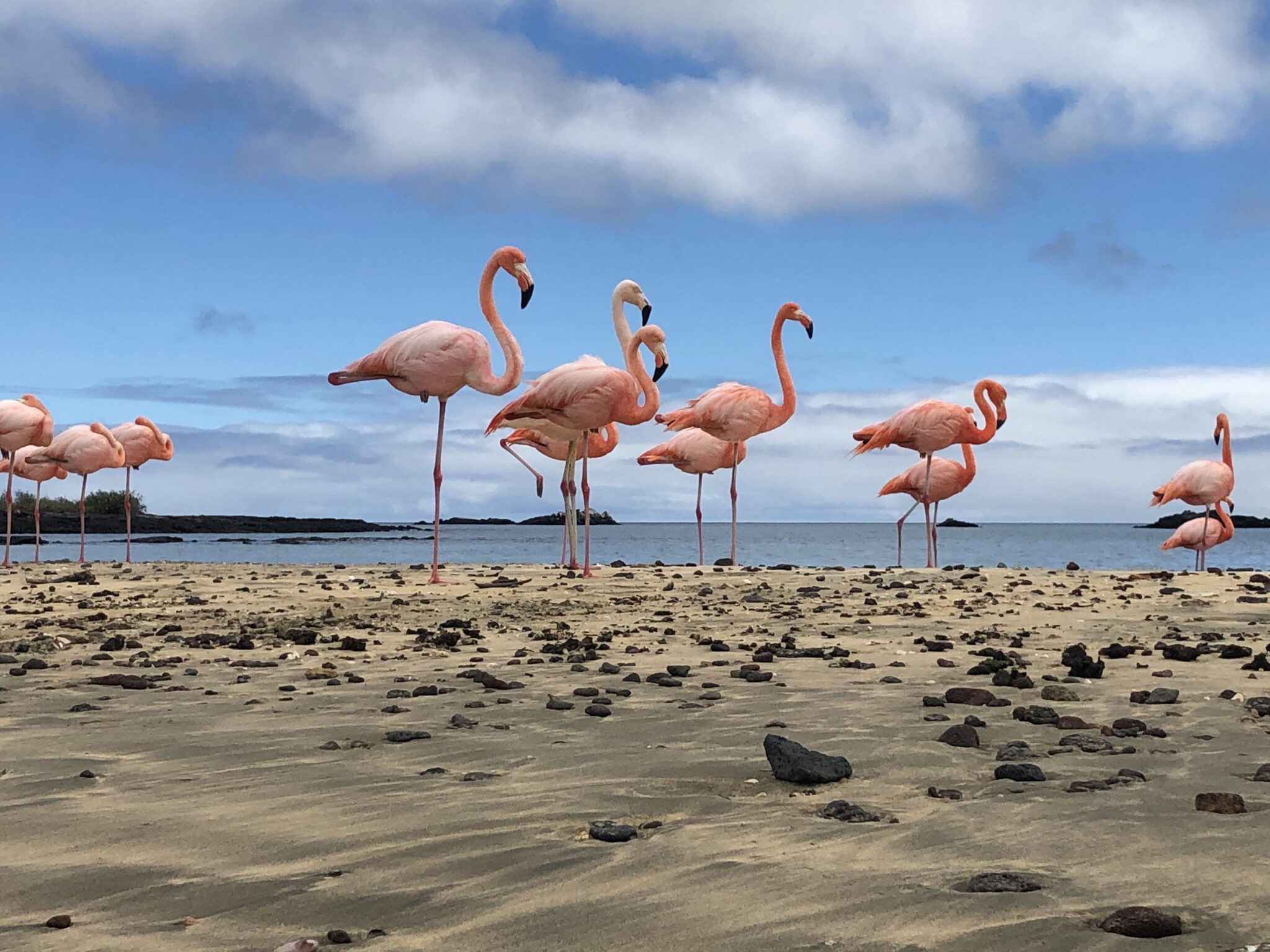 Step ashore North Seymour Island, a place alive with movement and color. Here, blue-footed boobies perform their comical, heartwarming mating dance – a theatrical shuffle with feet flashing turquoise against volcanic rock. Overhead, frigatebirds soar, their crimson throat pouches inflated like bright balloons, while land iguanas bask in the equatorial sun. After a picnic-style boat lunch, the journey continues to Bachas Beach, where pure white sands stretch into the horizon. Flamingos dip gracefully into shallow lagoons, and the coastline is dotted with sea turtle nests. Wade into the crystal shallows for a snorkel among tropical fish and corals, or simply relax, letting the rhythm of the surf remind you that you are in one of the last untouched corners of the world.