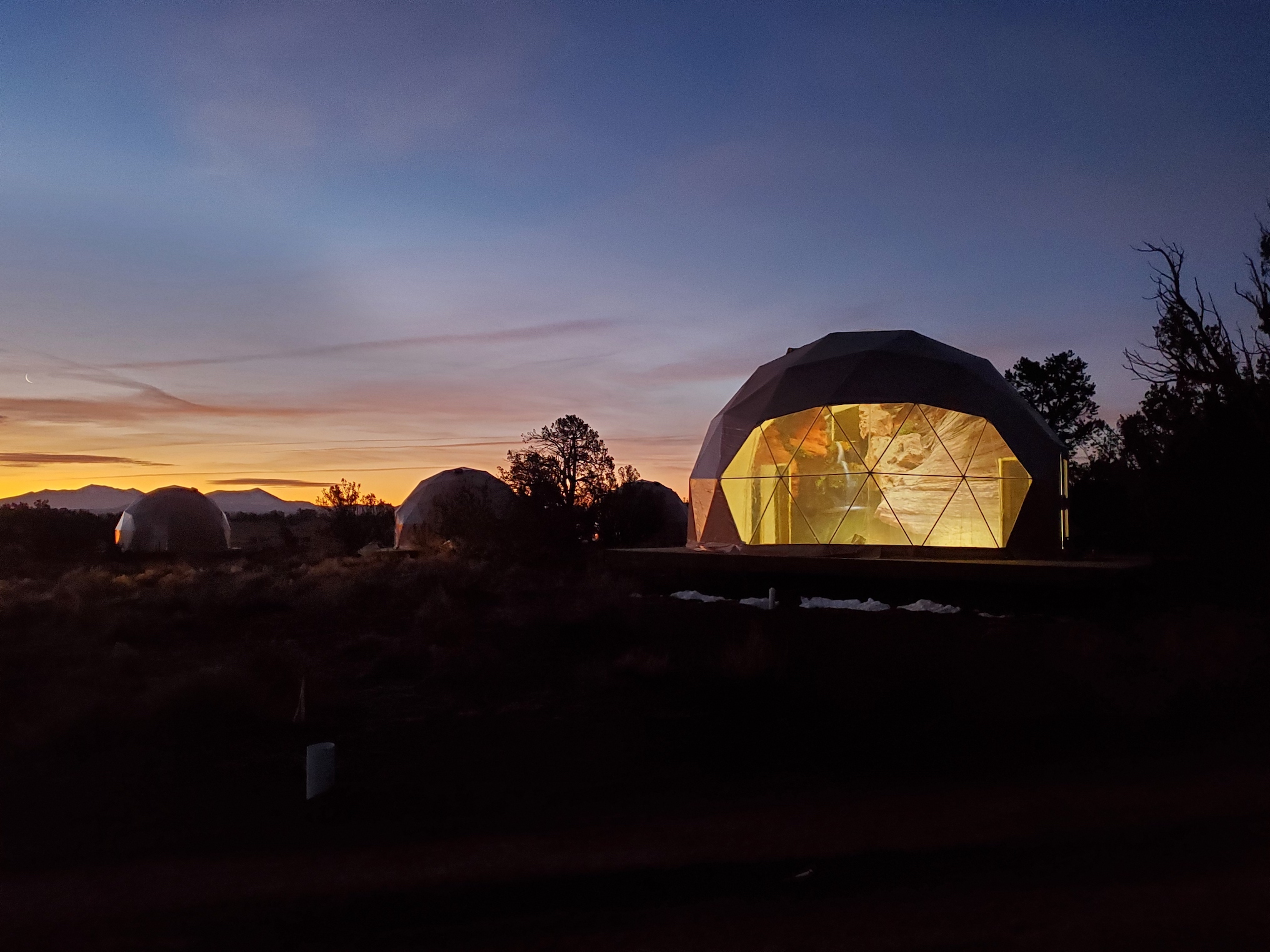 Your home for three magical nights is a private Sky Dome at Clear Sky Resorts Grand Canyon — an experience designed to bring you closer to the beauty of the desert landscape.