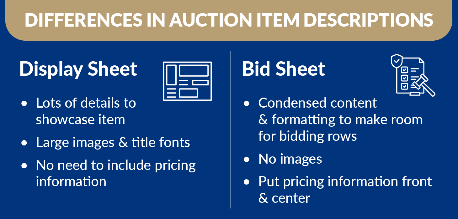 - Display vs. Bid Sheet Auction Item Descriptions